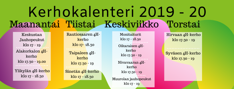 Kerhot jatkavat viikolla 3. 13.1 alken. Mukaan voi tulla myös uusia kerholaisia. Lisätietoja kerhoista ja kerhokalenteri löytyy täältä